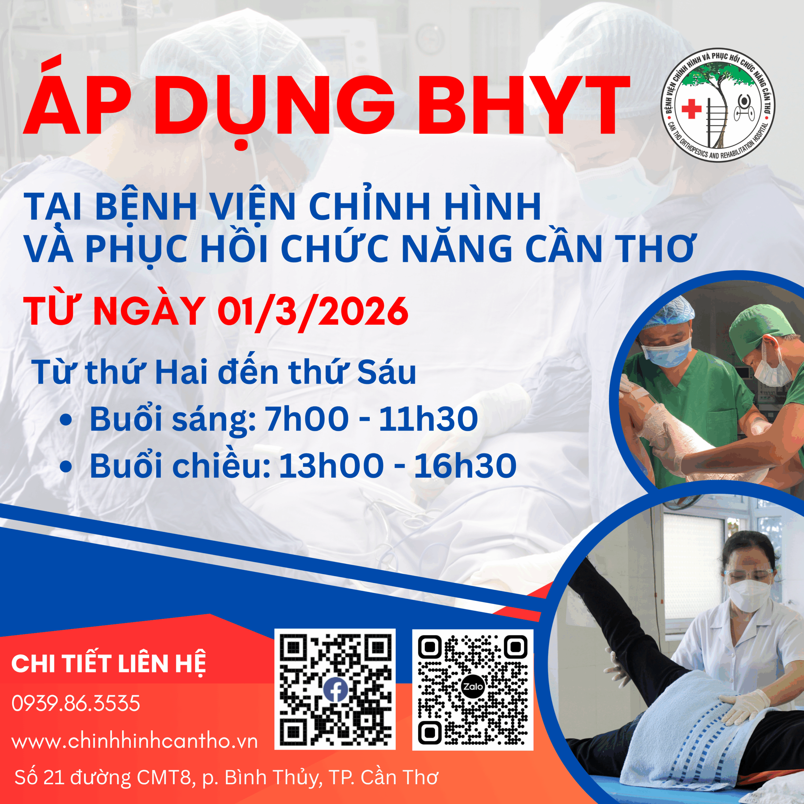 Chuyên Khám bệnh, chữa bệnh, phẫu thuật chỉnh hình, phẫu thuật chấn thương và phục hồi chức năng theo các hình thức nội trú, ngoại trú, phục hồi chức năng ban ngày.
